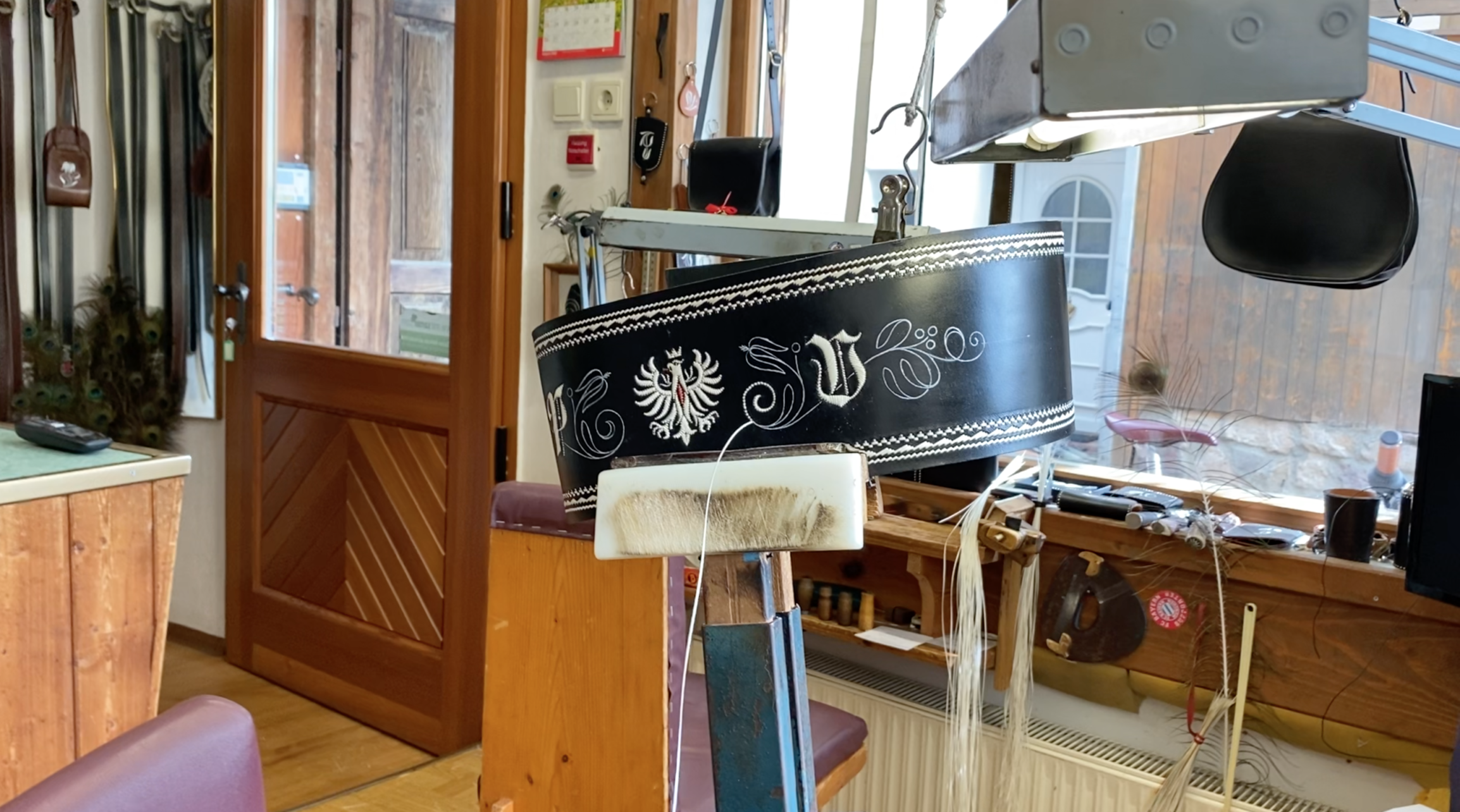 [dropcap]B[/dropcap]eim Spaziergang durch die Altstadt von Sarnthein bleibt unser Blick an einem Schaufenster hängen. Direkt hinter dem Glas sitzt ein Mann und bestickt ein Stück Leder. Selbst von außen können wir erkennen, in welch feinen Stichen sich die floralen Ornamente über das Material schlängeln. Neugierig betreten wir das Ladengeschäft und grüßen den Mann, der diesem fremdartigen Handwerk nachgeht. Freundlich erwidert er im Sarner Dialekt, ohne den Blick von seiner Arbeit zu heben. „Dürfen wir Ihnen ein paar Fragen zu Ihrem Handwerk stellen”, wollen wir wissen und jetzt schaut der Mann von seiner Arbeit auf und beginnt zu erzählen.